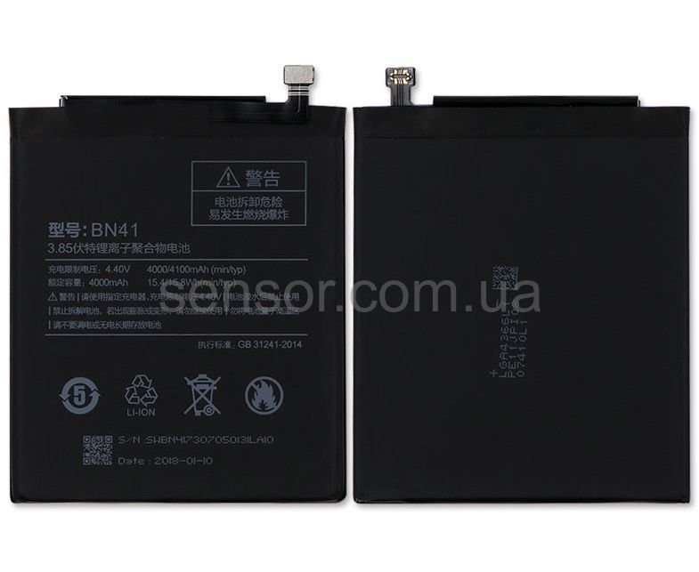 Батарея, АКБ, аккумулятор BN41 для смартфона Xiaomi RedMi Note 4 / Redmi Note 4X на базе процессора MTK Helio X20 Li-ion 4.4V 4000mAh